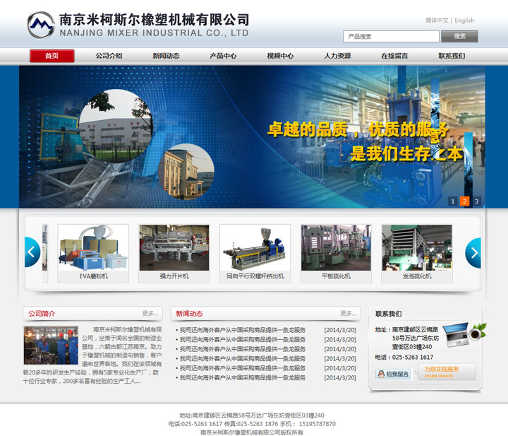 南京米克斯爾橡塑機械網站主要為產品展示型網站,因其公司主要從事外貿,因此該網站為中英文版本。